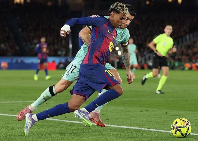本场比赛之前,巴塞罗那积28分排西甲次席,落后榜首皇马3分。开场仅4分钟,巴塞罗那取得梦幻开局,莱万抢断成功后低射得手,巴塞罗那1-0毕尔巴鄂竞技,上半时补时,亚马尔送出精妙助攻,费兰冷静单刀破门,巴塞罗那扩大比分。