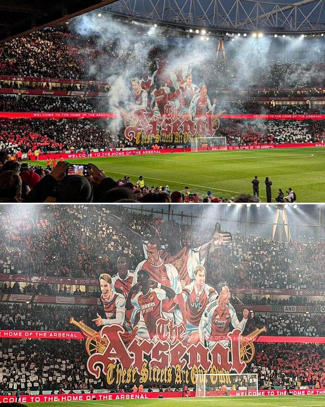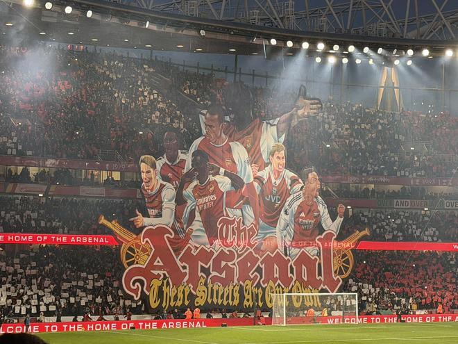 该Tifo下端写有“这是我们的地盘。(The streets are our own)”。据悉这一句歌词来源于阿森纳球迷赛前经常咏唱的歌曲《永远的北伦敦》。