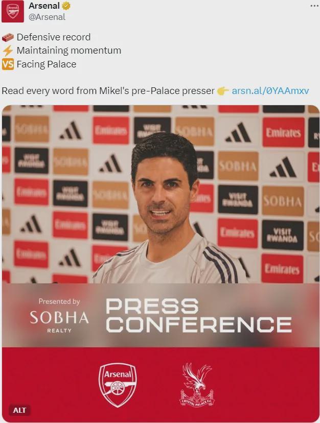 阿尔特塔出席了赛前新闻发布会,我们来看看阿森纳主帅的发言。
